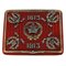 Fine tabacchiera Russa in argento dorato all' interno decorata con smalti rossi a guilloche' e applicati sul coperchio festoni corona e date per la ricorrenza dei 300 anni della Casa dei Romanov il tutto arrichito con diamanti taglio rosa e rubini cabochon.
