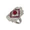 Anello in stile antico realizzato in oro bianco con incastonati diamanti taglio brillante e rubini uno centrale taglio cabochon rotondo per stimato carati 1 00 ca.