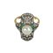 Anello in oro giallo e bianco in stile antico con perla centrale diametro 7 80 mm diamanti e piccoli smeraldi a contorno.
