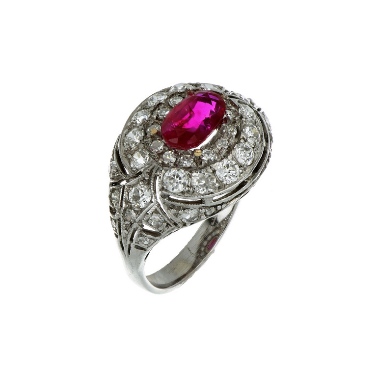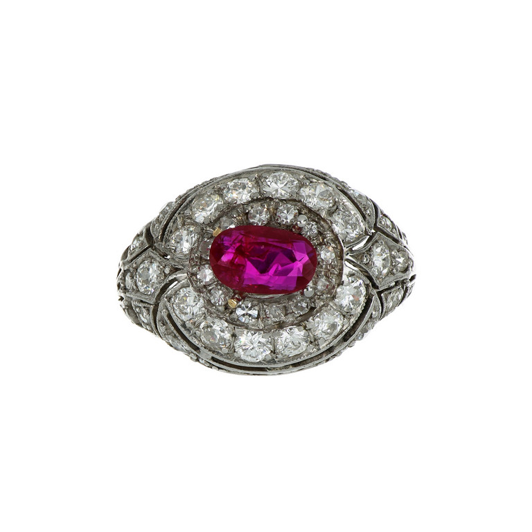 Al centro rubino birmano 1 40 ct. taglio ovale con certificato gemmologico GRS attestante l' assenza di trattamenti termici.