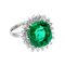 Anello in oro bianco con smeraldo centrale colombiano taglio smeraldo di carati stimati 5 50 ca. e contorno di diamanti taglio navette per stimati carati 1 10 ca.