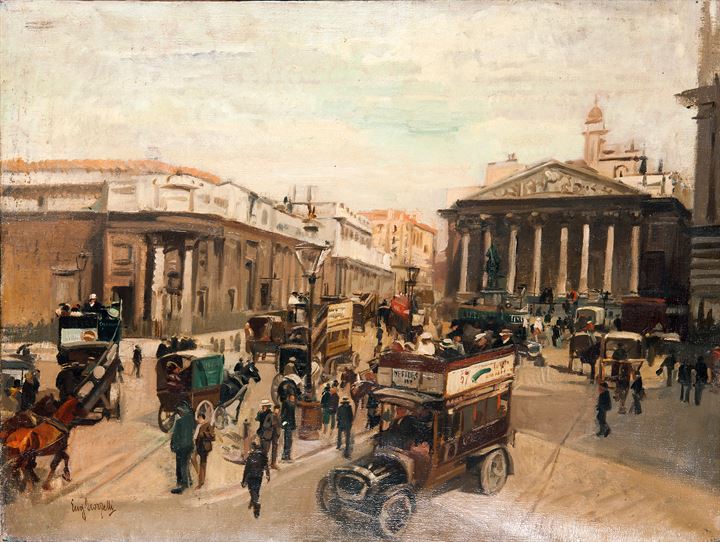 SCORZELLI EUGENIO Argentina 1890 - 1960 Napoli "Trafalgar square" 48x64 olio...