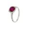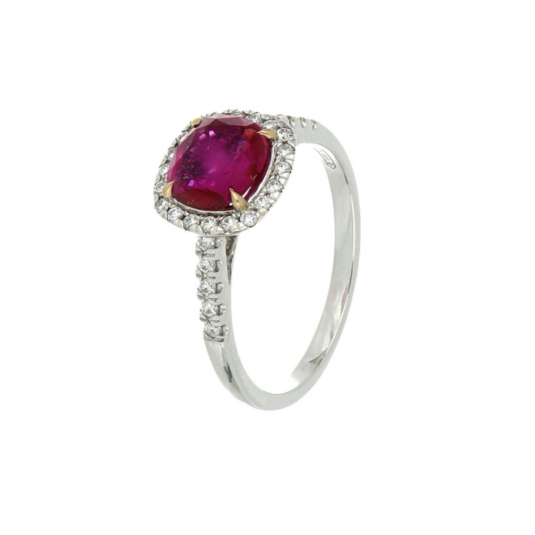 Anello in oro bianco con rubino birmano non riscaldato di carati 1 50 con certificato GRS diamanti taglio brillante a contorno e sul gambo.