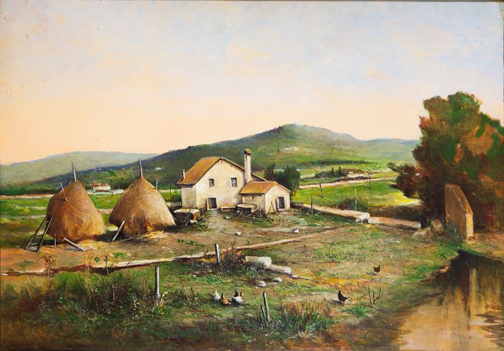 PITTORE ANONIMO DELL'800 "Paesaggio di campagna" 70x100 olio su tavola