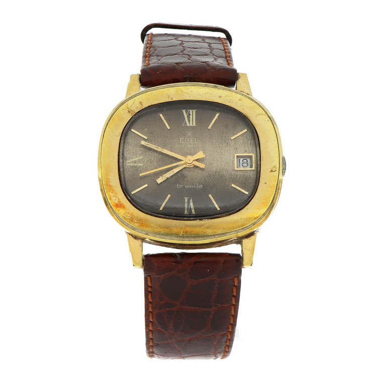 EBEL orologio da uomo con cassa placcata in oro giallo cinturino in pelle e fibia anonima.