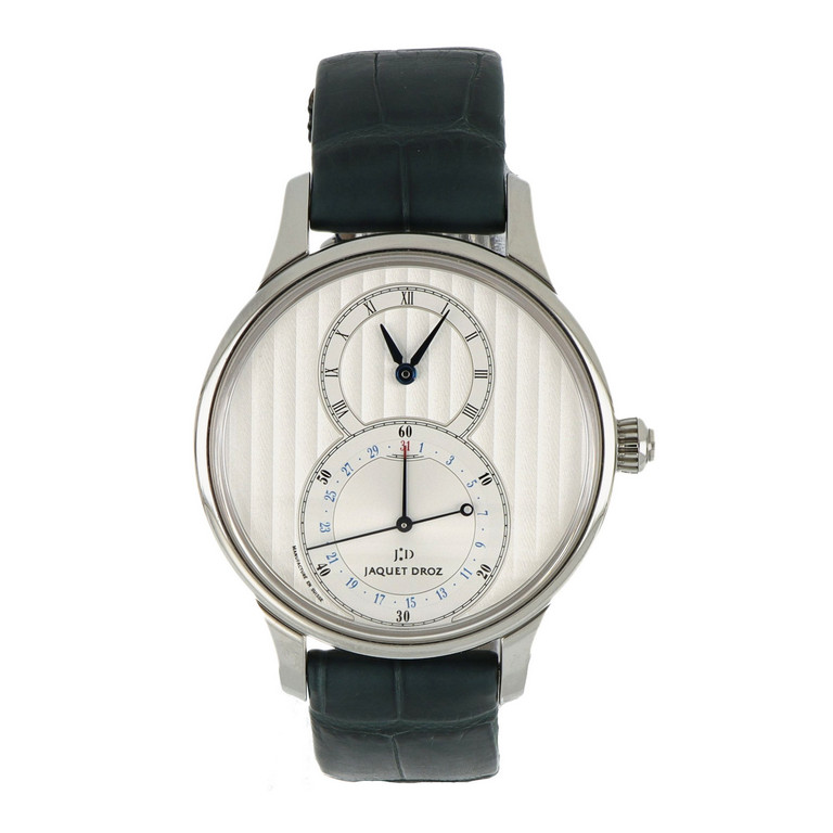 JAQUET DROZ orologio da uomo in acciaio quadrante argente' tapiserie' con cinturino in pelle e fibia deploiante originale.