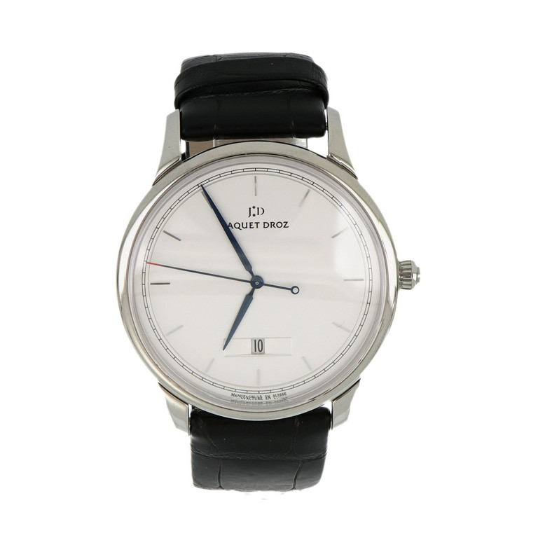JAQUET DROZ orologio da uomo in acciaio animato da movimento meccanico a carica automatica con rotore di carica inciso a soleil.