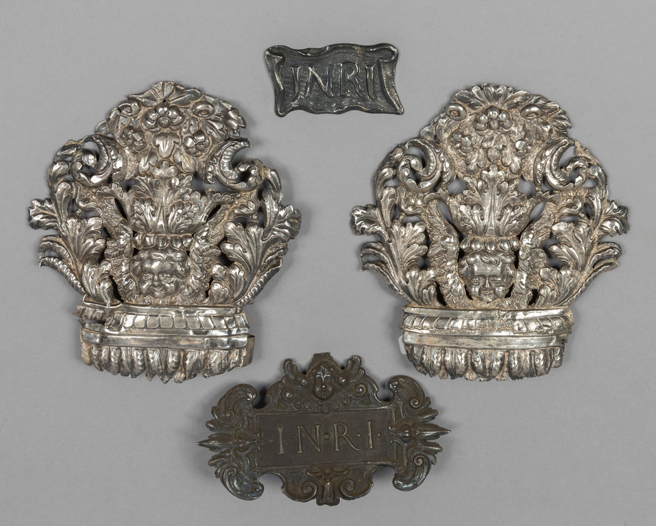 Due canti da Croce in argento e due Inri in argento sec.XVIII