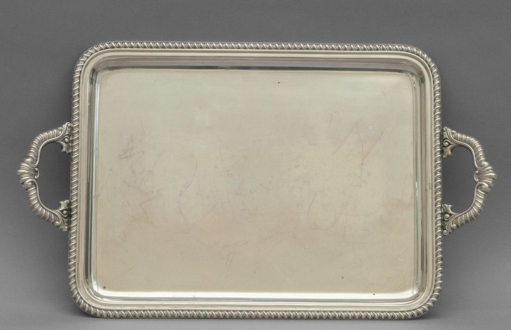 Vassoietto rettangolare in argento con manici