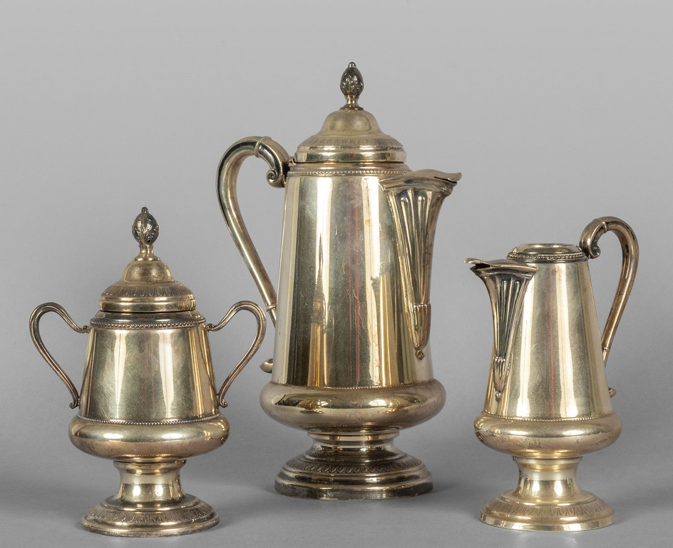 Servizio da thè in argento bordo decorato con palmette composto da tre pezzi (gr.600)
