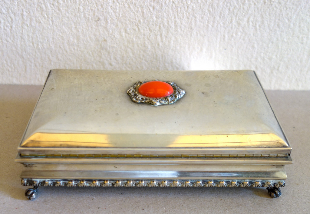 Previous Lot 2392 Next Aste Boetto - Via Mura dello Zerbino 10R, 16122 Genova Asta di Gioielli, Orologi e Argenti Moderni Asta di Gioielli, Orologi e Argenti Moderni Thursday 23 June 2022 hours 15:00 (UTC +01:00) OGGETTISTICA Scatola in argento con pietra