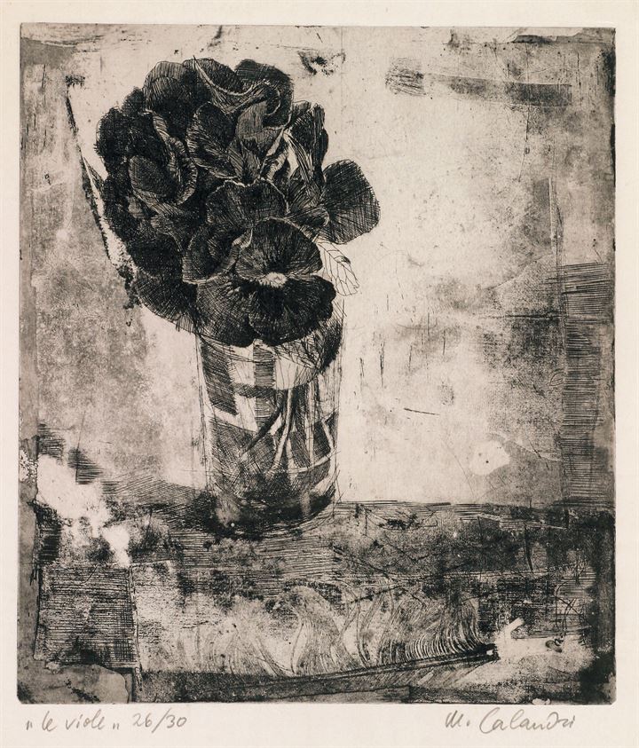 CALANDRI MARIO Torino 1914 - 1993 "Le viole" 1961 54x38 foglio, 26,4x23,2...