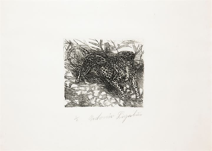 LIGABUE ANTONIO CH 1899 - 1966 Gualtieri (RE) "Pantera" 50x70 foglio, 21,5x25...