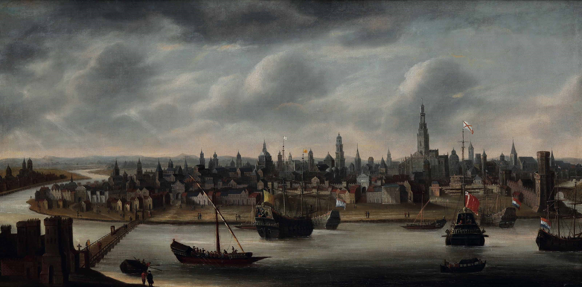 Scuola olandese del XVII secolo Veduta della città di Anversa