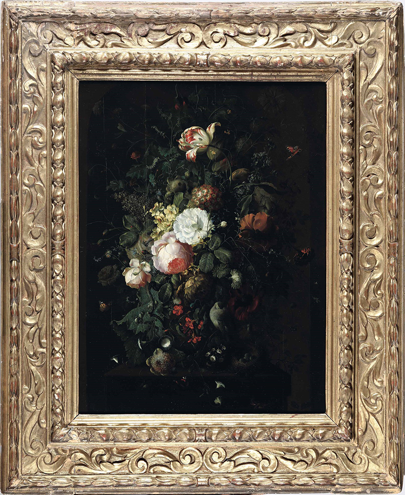 Scuola olandese del XIX secolo Natura morta con fiori e nido
