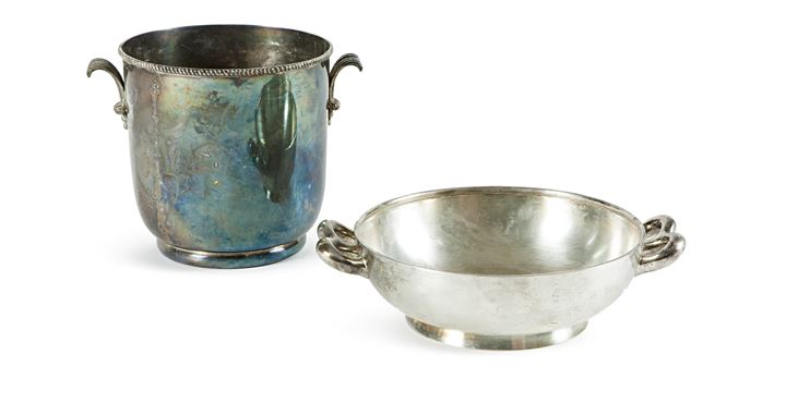 Lotto composto da due oggetti in argento: un secchiello portaghiaccio e una zuppiera firmata "Faccioli"
