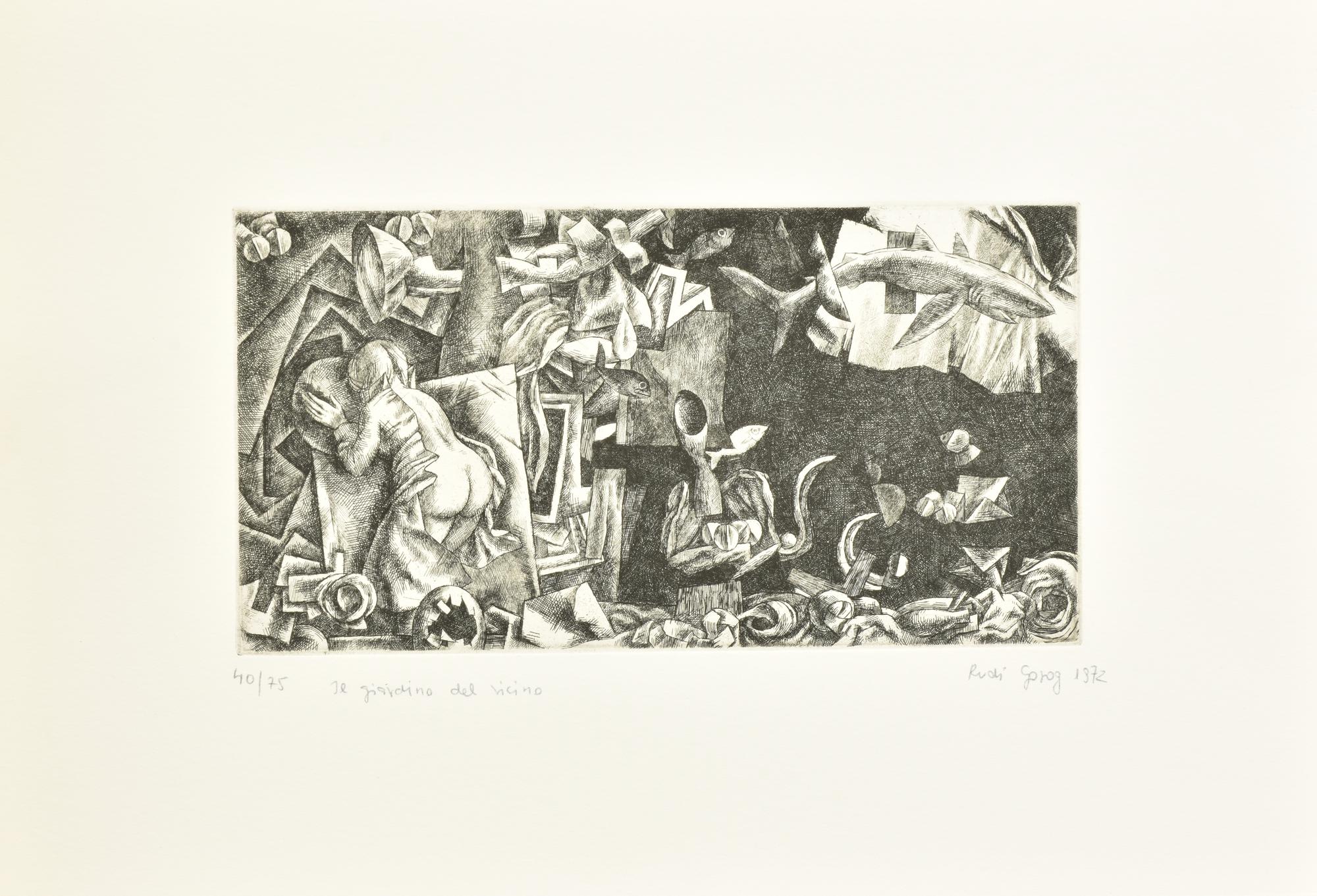Rudi Gorog IL GIARDINO DEL VICINO incisione su carta Fabriano, battuta cm...