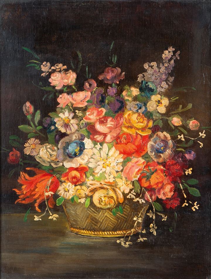AUTORE NON IDENTIFICATO "Fiori" 26x20 olio su tavoletta Opera firmata...