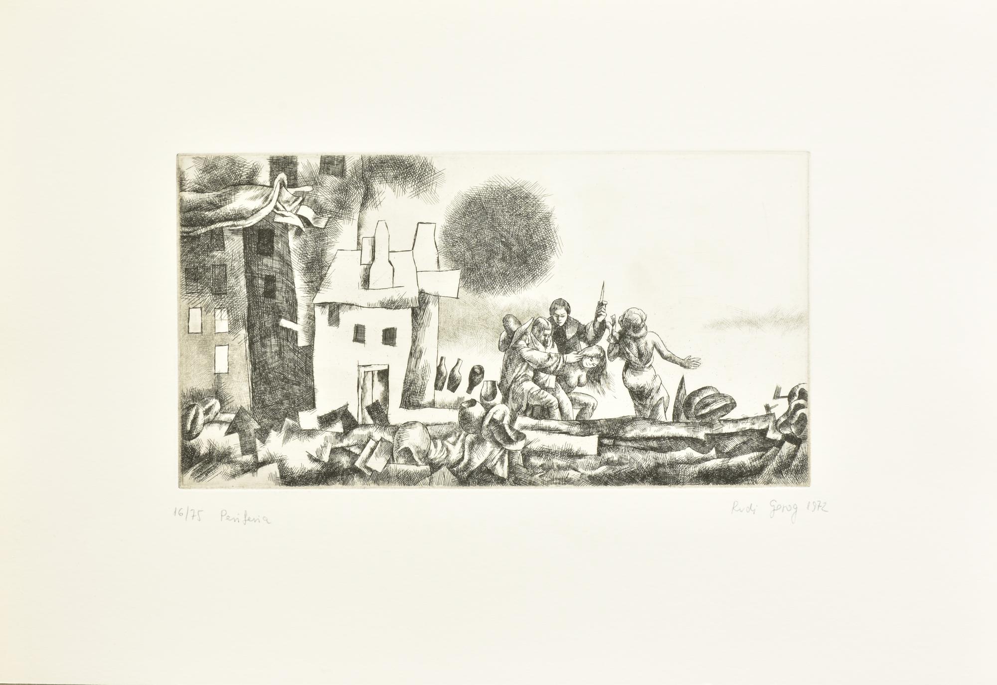 Rudi Gorog PERIFERIA incisione su carta Fabriano, battuta cm 16x30, su foglio...