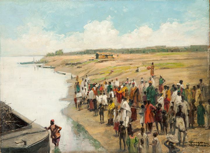 GHEDUZZI GIUSEPPE Crespellano (BO) 1889 - 1957 Torino "Traghetto sul Nilo"...