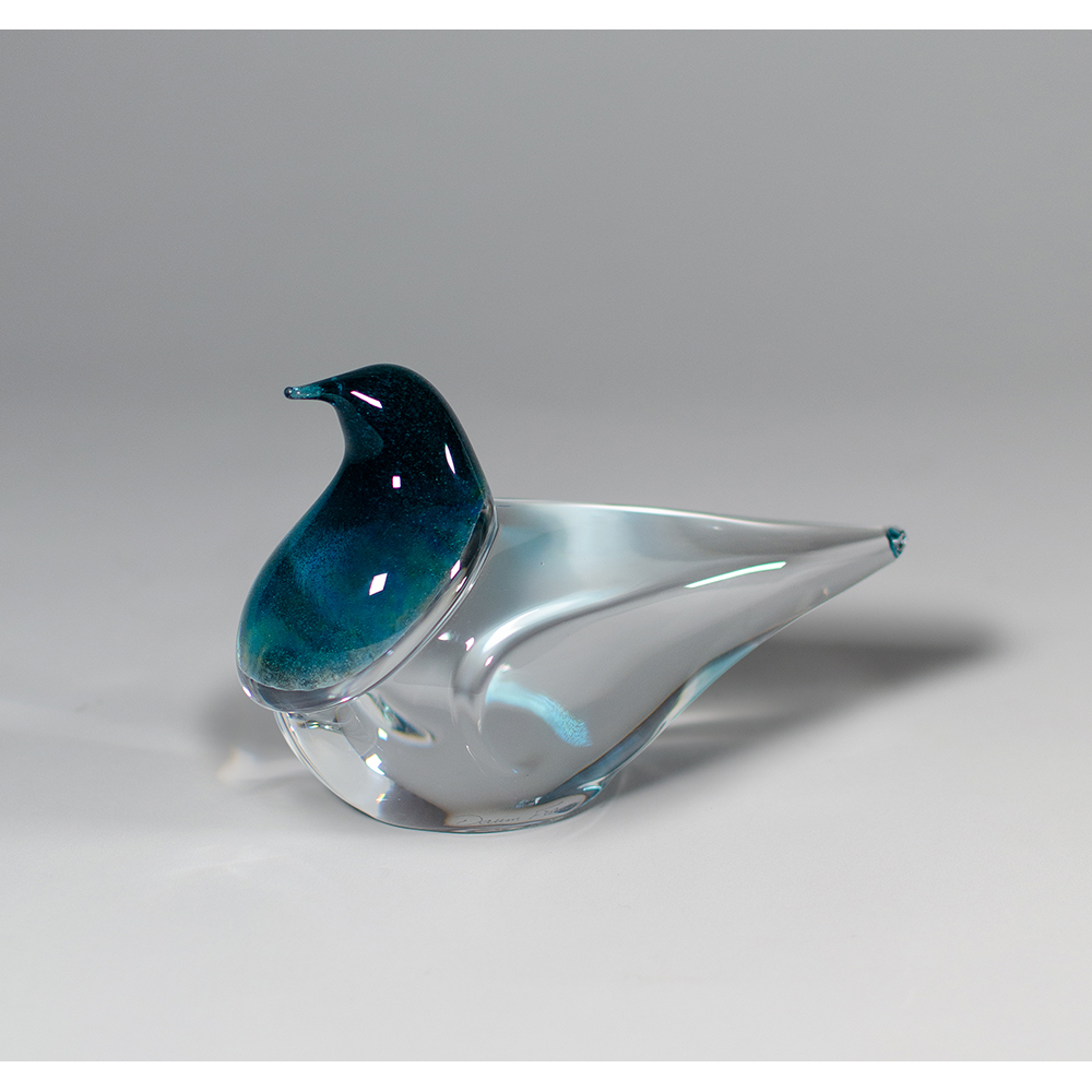Colomba in vetro sommerso con inclusioni di vetro azzurro,
