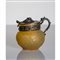 Piccola lattiera in vetro giallo con decoro a rilievo dorato e presa in argento leggermente dorato, 1900 circa, altezza cm 7,2.