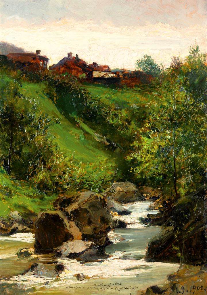 Lot 254 | DELLEANI LORENZO Pollone (BI) 1840 - 1908 Torino "Torrente sotto le case"...