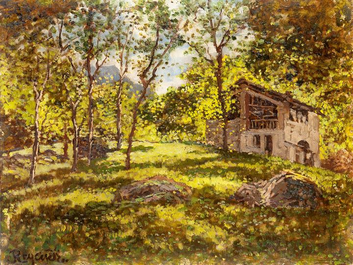 REYCEND ENRICO Torino 1855 - 1928 "In montagna" 30x40 olio su tavoletta Opera...