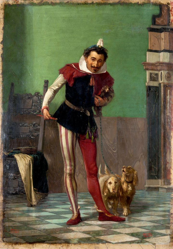 QUADRONE GIOVAN BATTISTA Mondovì (CN) 1844 - 1898 Torino "Giullare con cani...