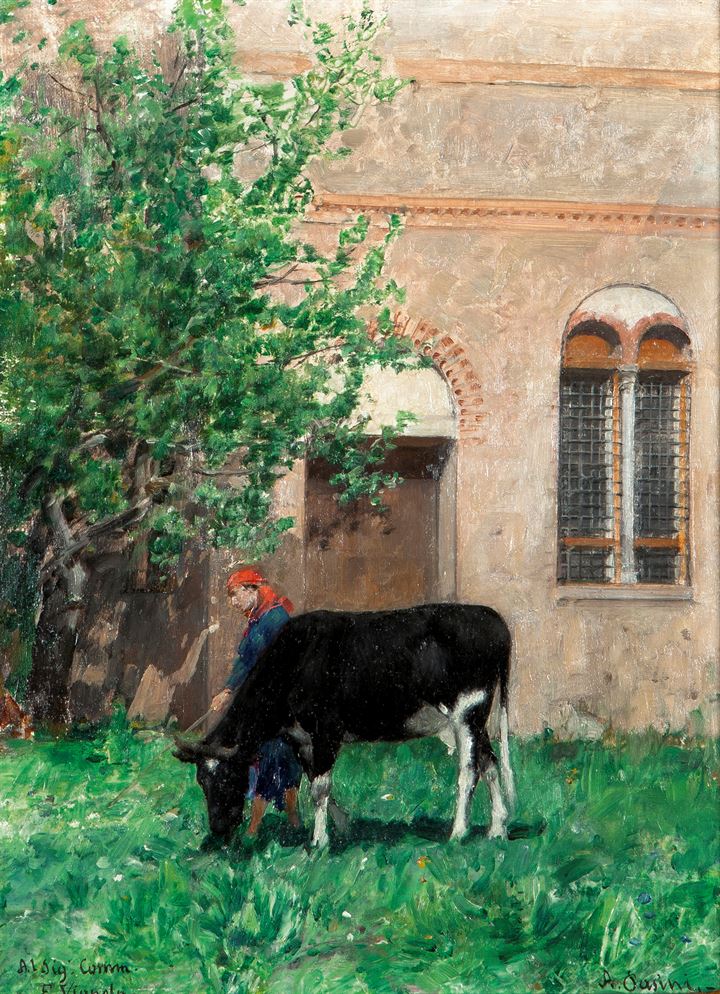 PASINI ALBERTO Busseto (PR) 1826 - 1899 Torino "Contadina con mucca" 22x16...