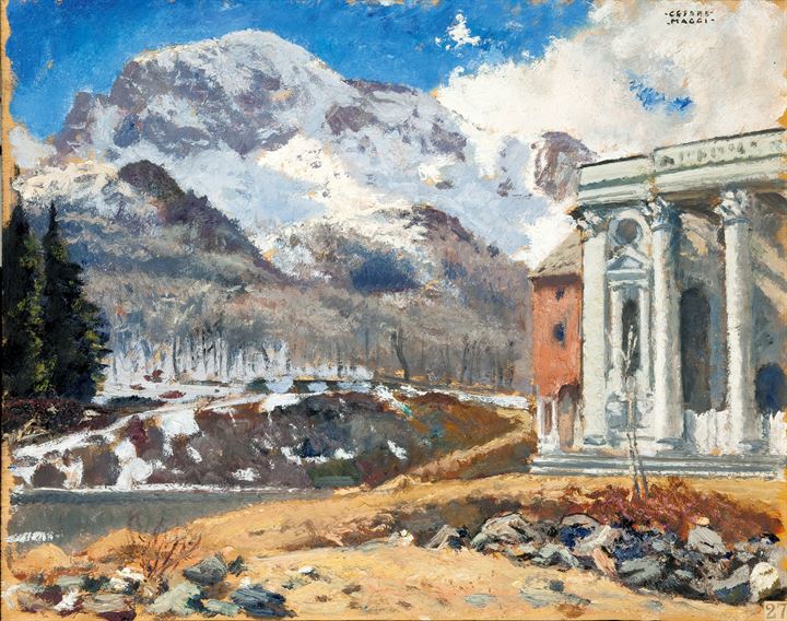 MAGGI CESARE Roma 1881 - 1961 Torino "Oropa" 40x50 olio su tavoletta Opera...
