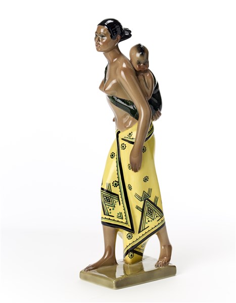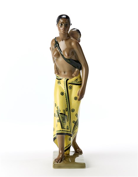 Abele Jacopi "Maternità abissina" Scultura in ceramica formata a colaggio e smal
