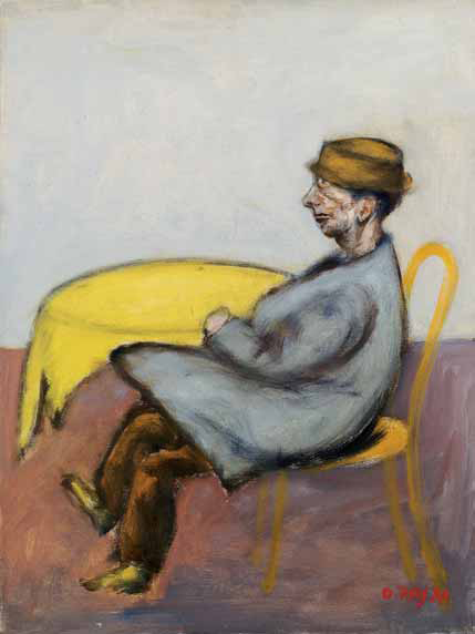Ottone Rosai Firenze 1895 – Ivrea 1957 Uomo seduto, 1955 circa olio su tela, cm 60x45. Firmato in basso a destra: O. Rosai Provenienza: Milano, Galleria Bergamini (timbro al verso sul telaio) Milano, collezione Architetto Nizzoli Autentica su fotografia firmata da Luigi Cavallo in data: Milano, 29 novembre 1989