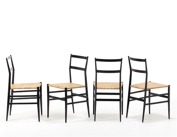 Lot 78 | Gio Ponti Quattro sedie modello "Superleggera". Produzione Cassina, Meda, 1957.