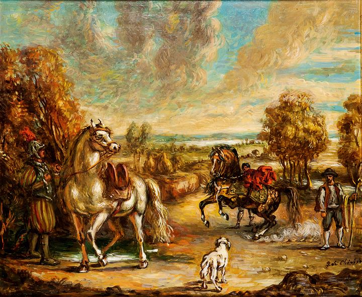 DE CHIRICO GIORGIO Volos 1888 - 1978 Roma "Cavalieri in un paese" metà anni...