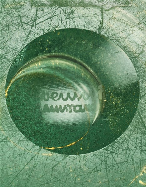 Large cup of the series "Sommersi". Execution by Venini, Murano, 1934ca. Sommerso green glass with internal horizontal ribs and inclusion of gold leaf. Drawing n. 3522 of the Blu Venini Catalog. Acid-etched signature under the base "venini murano". (h 12 cm.; d 22 cm.)