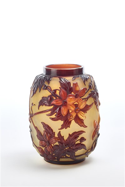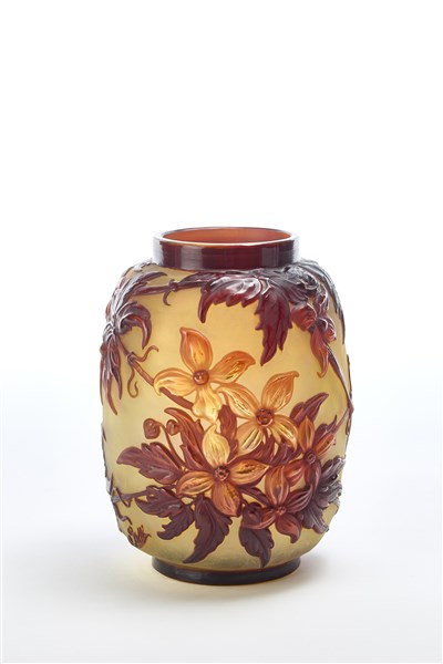 Gallé "Clématis" Vaso in vetro a cammeo soffiato in stampo e profondamente incis