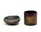 Lotto composto da una piccola coppa in terra refrattaria e un vaso cilindrico in gres smaltati in nero e bruno. Manifattura Ceramica Arcore, anni '70. Marcati "CA" sotto la base. (d cm 12; h cm 8,5 e d cm 9,5)