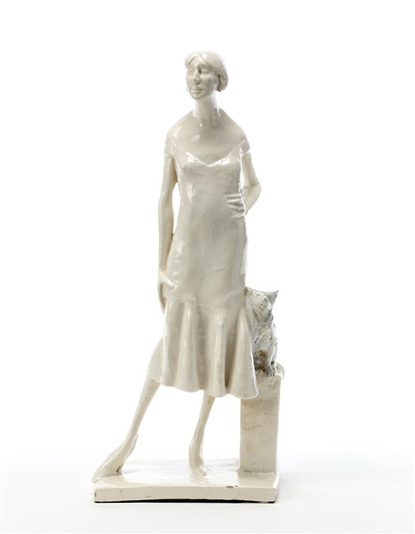 Enrico Mazzolani "La signora" Scultura in maiolica smaltata bianca e grigio cele