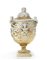 Grande cista biansata d'apparato. Ceramica smaltata in bianco sotto vetrina e decorata in oro zecchino con festone a bucrani, girali d'acanto e costolature. Esecuzione Fornaci San Lorenzo, Borgo San Lorenzo in Mugello, 1923ca. (h cm 63) (difetti e restauri)