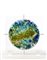 Transparent colorless solid glass plate-sculpture with corrugated surface and inclusion of polychrome murrine. Murano, 1970s. Signed and dated. Mounted on a methacrylate support. (d 33 cm.)