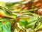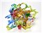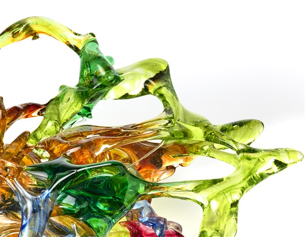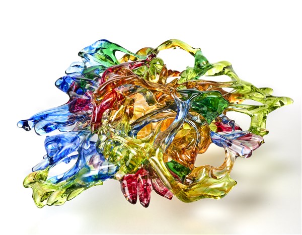 Centrotavola scultura in vetro soffiato con filamenti trasparenti policromi. Anni '80. (h cm 16; d cm 34) (lievi difetti)
