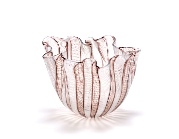 Fulvio Bianconi Vasetto a fazzoletto in vetro trasparente incolore con canne di