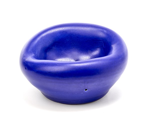 Suzanne Ramié Svuotatasche-scultura in ceramica smaltata in blu cobalto. Manifat