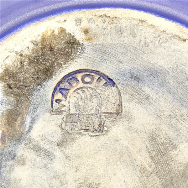 Svuotatasche-scultura in ceramica smaltata in blu cobalto. Manifattura Madoura, anni '60. Recante marchio sotto la base. (cm 16x8,5x15)