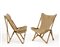 Coppia di poltrone "tripolina". Italia, anni '60/'70. Struttura in legno massello di teak, schienale in tessuto beige. (cm 70x103x80) (lievi difetti)