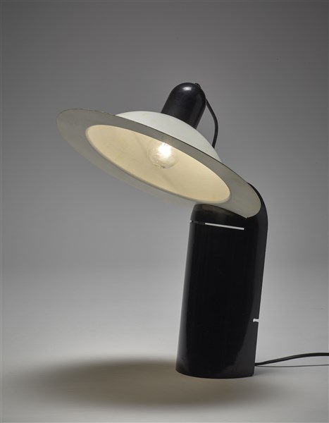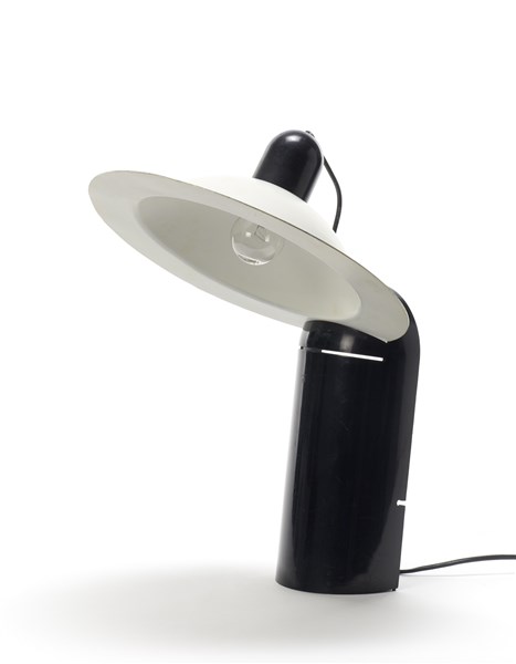 Lampada da tavolo modello "Lampiatta". Produzione Stilnovo, Italia, 1971. Plastica nera, metallo verniciato bianco. Recante marchio del produttore. (h cm 38) (lievi difetti)