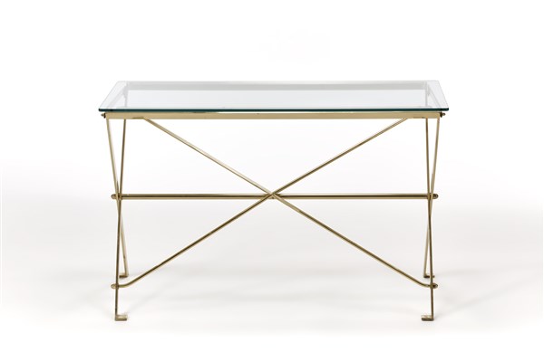 Tavolo. Produzione Azucena, Italia, anni '90. Struttura in ottone e piano in cristallo. (cm 111,5x69,5x59) (lievi difetti)