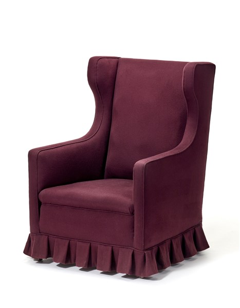 Bergère. Milano, 1952/1955. Rivestimento in panno di lana bordeaux, fusto e piedini in legno. (cm 68x96x77)