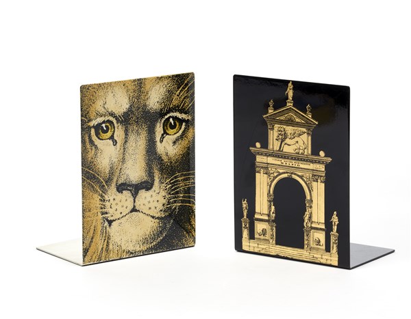 Lot 416 | Fornasetti Due fermalibri. Milano, anni '90/2000. Metallo verniciato e serigrafa